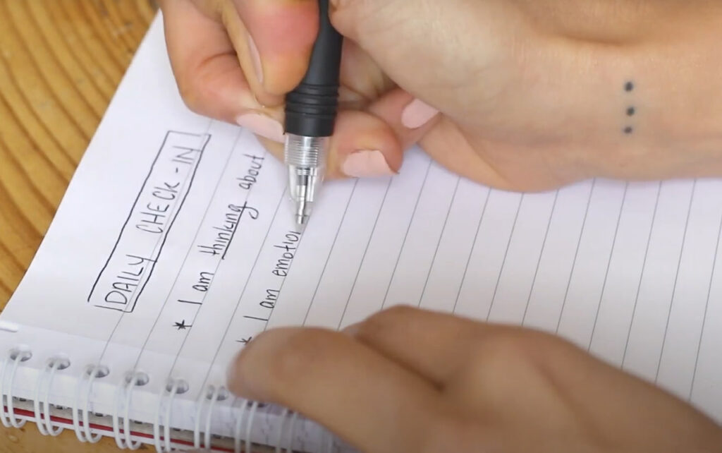 Schreibe in ein Notizbuch oder auf ein A5-Blatt: